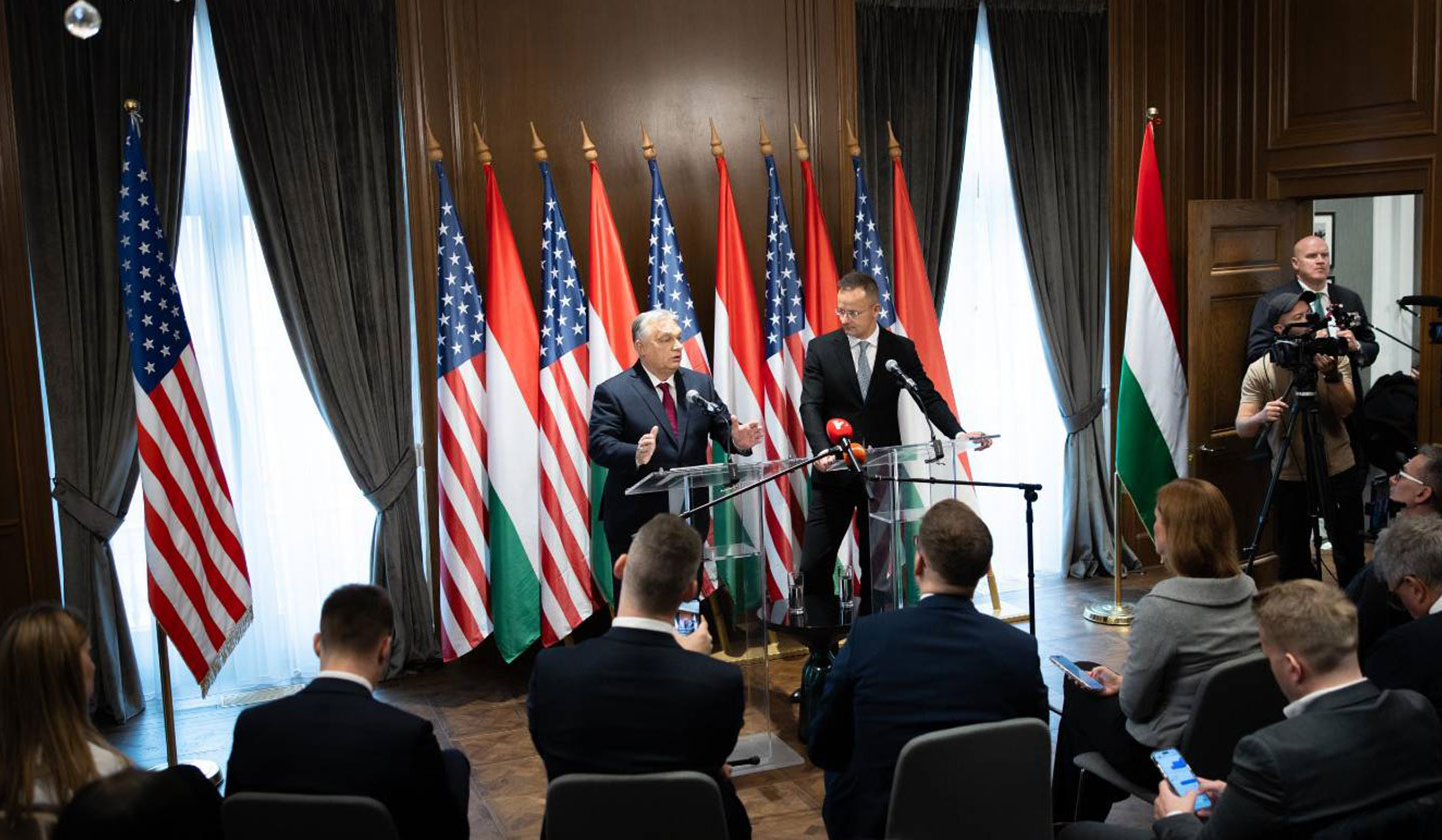 Szijjártó Péter: Köszönjük türelmüket! Külön tisztelettel köszöntjük mindazokat, akik most otthon, Magyarországon élőben követnek minket. Külön tisztelettel köszöntjük a közmédia, az ATV, a Hír TV, a Patrióta, a Mandiner és a Magyar Nemzet nézőit. Nemrégen ért véget Miniszterelnök úr és Donald Trump elnök hatodik kétoldalú találkozója, a második itt a Fehér Házban, Miniszterelnök úr 6 esztendő után tért vissza az ovális irodába. A találkozó hosszabban tartott, mint bárki tervezte volna, és a találkozó eredményeiről Elnök úr fog Önöknek beszámolni, utána pedig sort kerítünk majd a kérdésekre és természetesen a válaszokra is. Elnök úr!