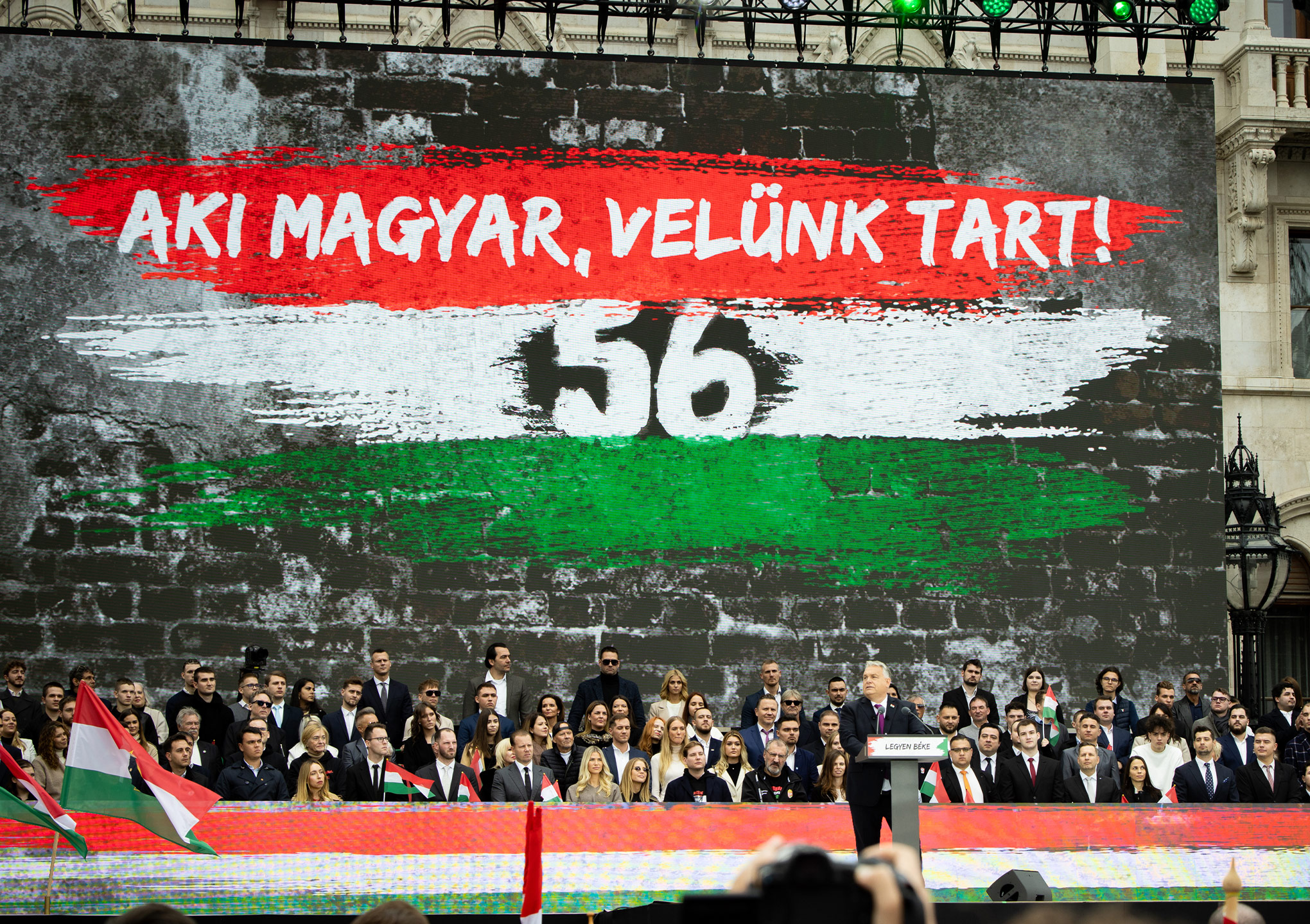 Ma az egész világon tudják, a magyar az a nép, amely soha nem adja fel önmagát. A világ sokat változott ’56 óta – 69 év nagy idő! –, de egy dolog nem változott, és nem is változhat. A tartás. A tartás nem változhat. Mert a forradalom szelleme nem a harcban, hanem a magyarok önbecsülésében él tovább. ’56 az emberi méltóság ünnepe. Egyetemes emberi üzenet: minden népnek joga van szabadságban, méltóságban és békében élni. Büszkék vagyunk, hogy ’56-ban az egész szabad világért harcoltunk. Mégis magunkra maradtunk. Cserben hagytak bennünket, ahogy mindig, ha komolyra fordultak a dolgok. ’56 a bizonyíték: mi, magyarok mindig többet adtunk a világnak, mint amit kaptunk tőle.