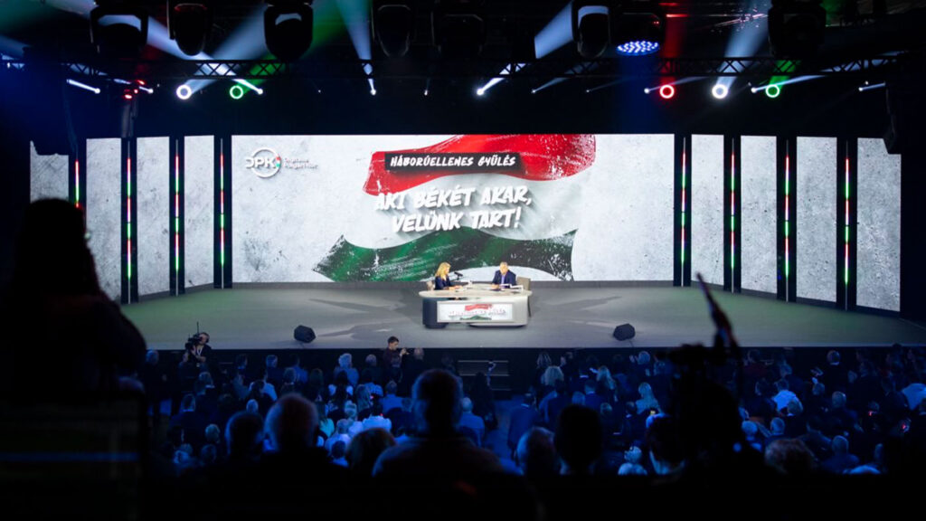 Orbán Viktor beszélgetése a Digitális Polgári Körök háborúellenes gyűlésén